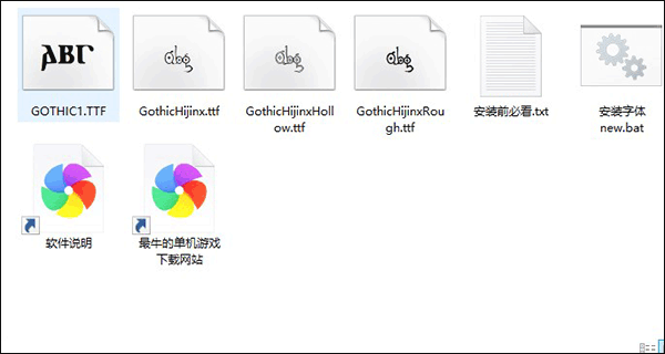 首先我们把字体下载下来,解压后打开文件夹就可以看见我们的字体了。