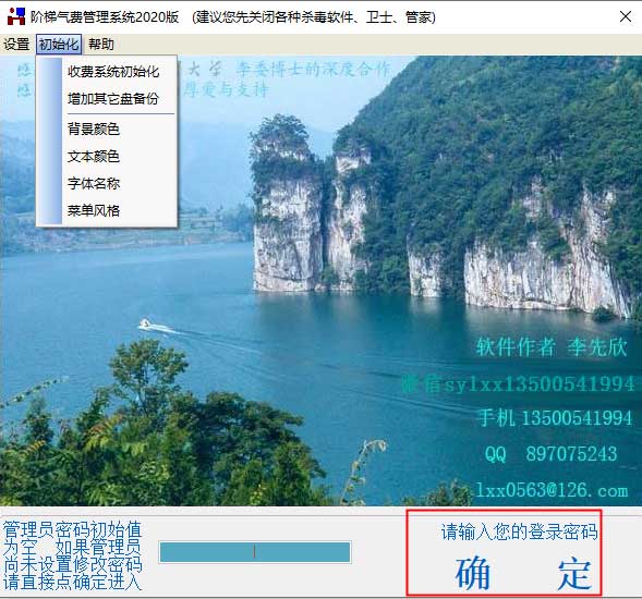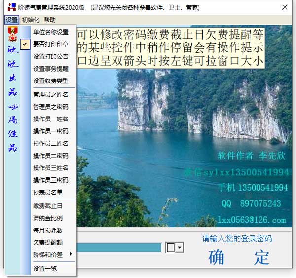 2、设置菜单下可以修改密码缴费截止日欠费提醒等鼠标在窗口的某些控件中稍作停留会有操作提示鼠标停在窗口边呈双箭头时按左键可拉窗口大小。