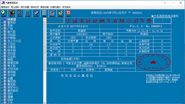 3、有预充气费的功能,在交费确定时有对应的功能,在扣减气费后发票中和系统中都有明确的显示;