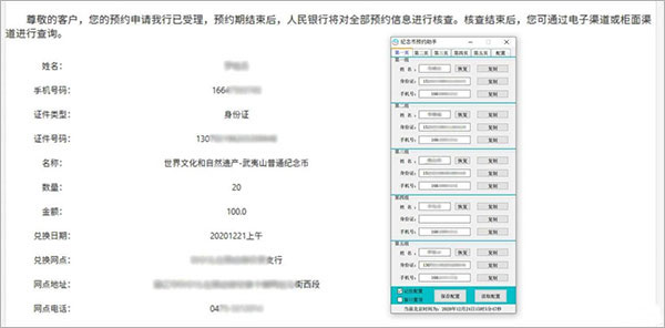 经常预约纪念币的朋友都知道,之前四家银行一起预约时经常会出现卡顿、打不开网页的情况,而该助手增加了服务器,目的也是为了增加大家预约纪念币时的稳定性,确保大家都能顺利的预约成功!