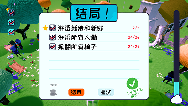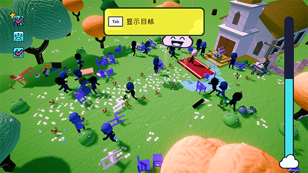 3、目标多样:关卡目标包括毁坏婚礼、破坏农场庄稼、干扰城市活动等40余种差异化任务,还有隐藏目标等待玩家发现,激发探索热情。