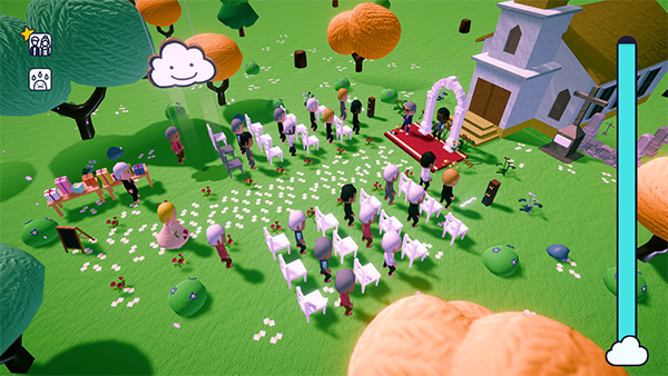 4、独特的创意与玩法:玩家化身拥有超能力的调皮云朵,通过释放雨水、冰雹、闪电、龙卷风等天气现象,与场景和人物互动,制造各种有趣事件,如淋湿郊游人群、降冰雹打乱派对节奏等,享受整蛊带来的乐趣与成就感。