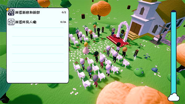 5、因为是第一关,人们都有点笨笨的,尤其是新娘,只要不浇她,即使周围洪水滔天,她还是会傻乎乎的往婚礼台前进,尽管那里已经被冲散了。
