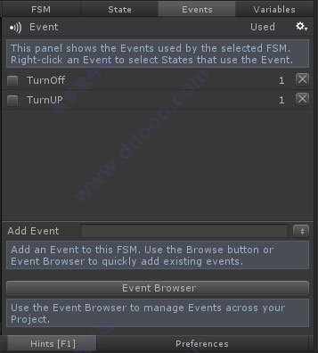Events视图:添加事件,如下图添加了名为TurnOff、TurnUp事件