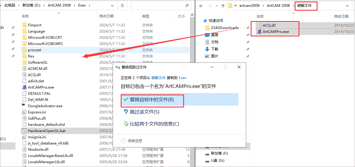 安装完成后,打开Crack文件夹将ArtCAMPro.exe和ACQ.dll两个文件复制,粘贴至程序安装目录中的Exec文件夹内覆盖原文件即可完成,