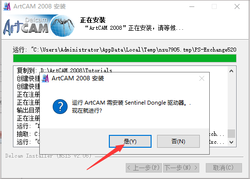 解压后选择ArtCAM文件夹里Setup.exe进行安装,依次选择“Next”或“Yes”,如有弹出驱动器安装,请选择是,等待安装完成。如图: