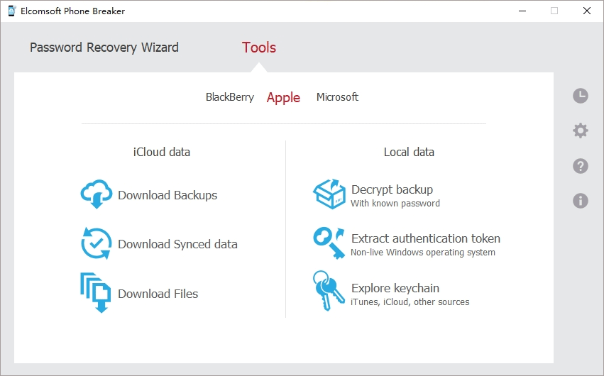 Elcomsoft手机断路器可以取证存储在各种移动设备中的信息。该工具为Apple iOS设备,BlackBerry OS和BlackBerry 10智能手机以及由Windows 10,Windows Phone和Windows 10 Mobile操作系统提供支持的设备提供逻辑采集。可以获取本地和云备份以及同步数据的云提取。