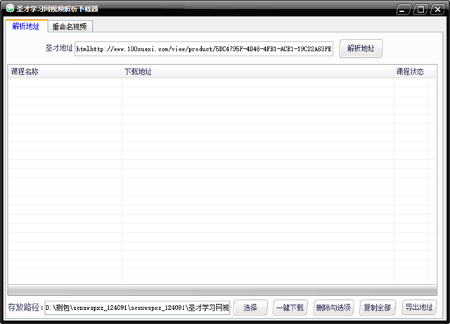 2、点击【解析地址】按钮即可获取该课程所有视频的下载地址;