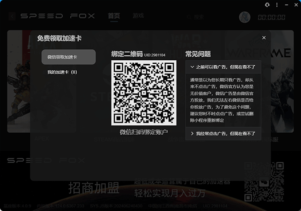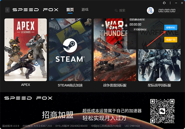 4、领取完成后即可进行加速使用