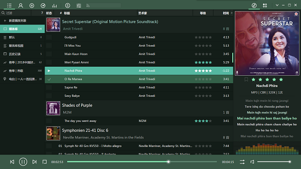 网络歌曲播放方面,目前只支持酷我(320K)的音乐源了,在旧版还有另外两个源分别是咪咕千千,不过已经失效了。当然会折腾的小伙伴,可以自己找新的音乐源地址整合到播放器里面。