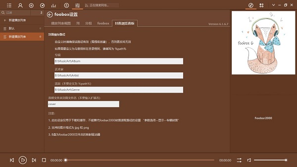 首次使用,你可以进入「foobox」的设置界面,先设定好音乐、封面默认的下载目录。同时也提供了丰富的界面设置选项,支持暗黑、浅色模式,随机颜色方案等,字体等,根据你自己的喜爱来设定了。