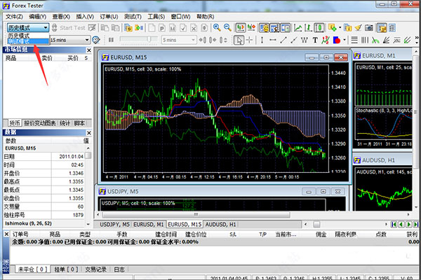 例如您可以设置为实盘速度(像实盘市场那样)。这在模拟手动交易时会给您最为真实的在线交易体验。或者您可以加速测试并在分分钟内回放数年的历史数据。