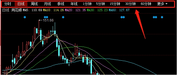 K线为一股票的历史走势图,俗称的蜡烛图。如在某只商品的分时界面,按下F5键就可以切换到该股的K线界面。