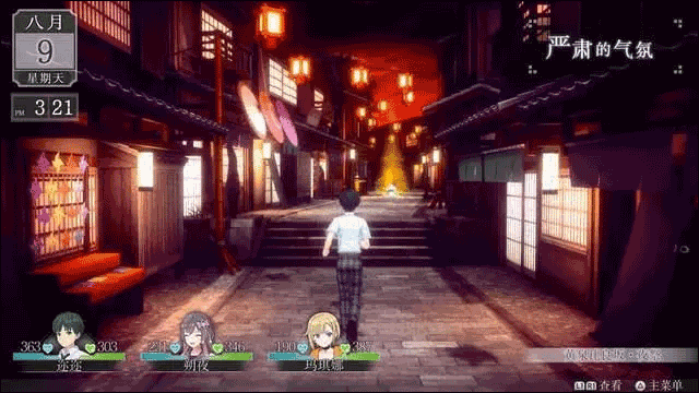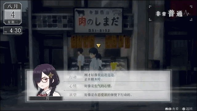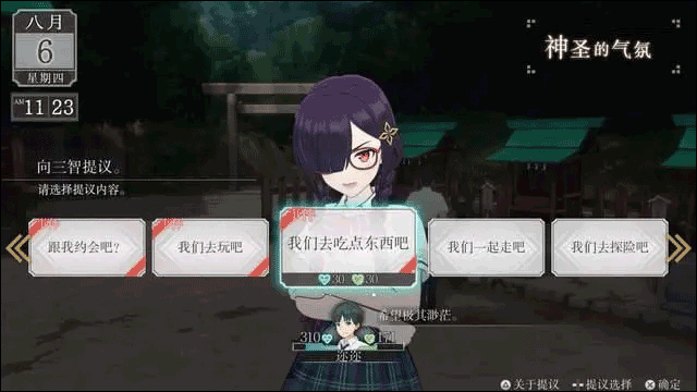 这个成功率还与游戏中右上角的气氛的设定有关系,这里会根据场景内角色、地点、时段等因素决定,这一项会影响角色行动与提议的成功率等。而玩家可以靠提议时的附加文字判定成功率。如 " 十之八九会成功 " 几率估算应该是 90% 左右,而 " 希望渺茫 " 可能仅有 10% 左右等。