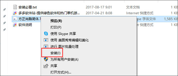 双击字体文件,在打开的字体文件界面上点击最上方的“安装”按钮,就可以将该字体安装到系统中。