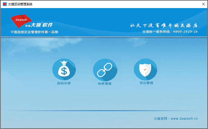 大旗足浴管理系统官方版是专门为洗浴中心推出的一款足浴收银软件 ,该软件界面简洁且功能强大,可独立进行所有的营业项目操作,包括消费录入、收银结账、新增会员、会员充值、会员卡转账、收银交班表等。