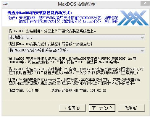MAXDOS安装分区时会造成引导失败,修复后可放置在任意分区根目录均能正常引导。