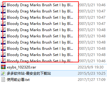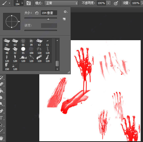 4、找到最后的画笔就是ps恐怖血手印笔刷,拥有多种不同的形状,用户可以调整大小直接放在图片上使用。