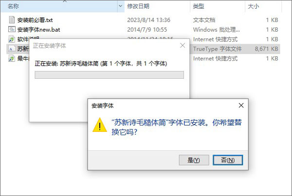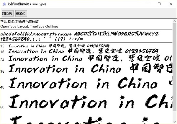 双击字体文件,在打开的字体文件界面上点击最上方的“安装”按钮,就可以将该字体安装到系统中。