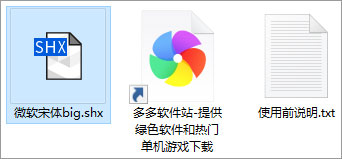 1、下载后解压缩,在解压后的文件里我们就可以看见我们的微软宋体big.shx字体了;