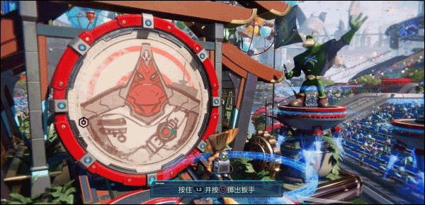 画面一转瑞奇与叮当正在准备参加一个为英雄举办的庆典,首先移动角色走到前方获取瑞奇的扳手。