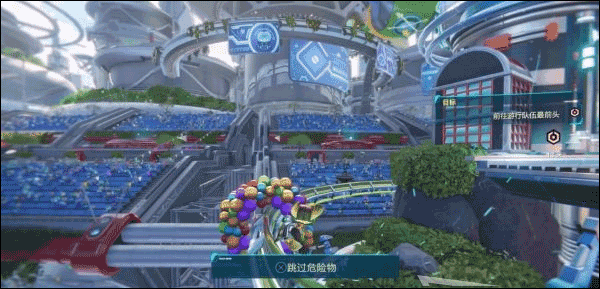 由于前方轨道带电我们需要切换轨道进行躲避,在轨道上推动左摇杆的时候按下×键即可切换轨道。