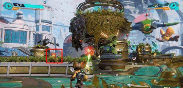 搭乘移动平台来到庆典场地后打破木箱继续前进,破坏场地中的木箱后可以获得一定数量的螺丝。