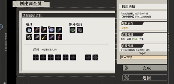 5、最后初始物品建议优先刷出瓶装药和医用酒精,这两样必备。其他物品可选。关于书籍,推荐携带科学类,因实际用途较大,而神秘学类实用性较低,可不带。