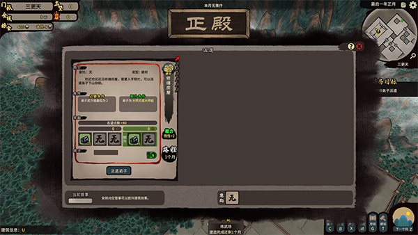 6、然后剩余的其他弟子我们可以回到正殿来进行外派。