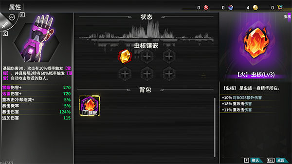 3、想要获得虫核的加成需需要进行镶嵌。