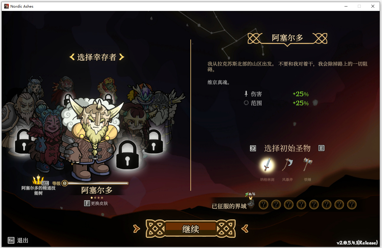 北欧之烬诸神黄昏幸存者是一个受北欧灵感启发的Roguelite敌人地狱游戏,英文名称Nordic Ashes: Survivors of Ragnarok,此游戏基于北欧背景而开发,玩家将置身于一个怪物横行的世界,必须竭尽全力求生,同时解锁新武器和技能,不断提升角色属性。目前游戏提供了多个角色和地图选择,丰富的技能树系统让玩家能够自由提升各项属性。此外,还有多种游戏模式供玩家选择,带来多样化的游戏体验。