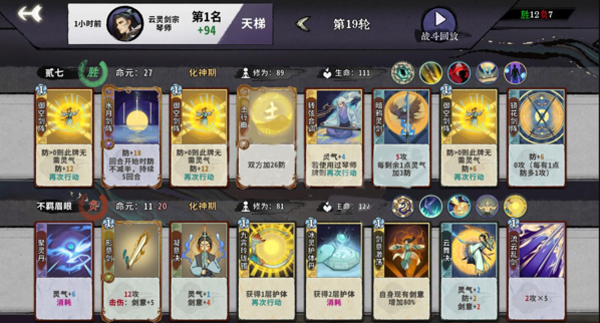 2、如果还没有,就一回合突破到元婴期抽4轮元婴期,然后直接化神成型就行。好处是你可以基础牌全满级,坏处是你比正常直接突破的人在金丹和筑基期少两个技能和是十几点血量,不过你升级后就没有这个问题了。