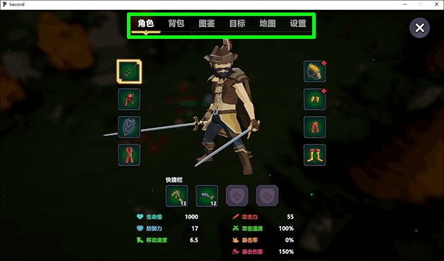 8、在游戏中按下Esa键即可呼出角色、背包、图鉴、目标、地图和设置界面,在设置界面,大家可以通过保存游戏进度来保障自己的游戏进展;