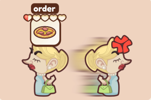 10、顾客的耐心有限,耐心值显示在他们头顶的心数上。因此,你需要在他们生气离开之前及时上菜。