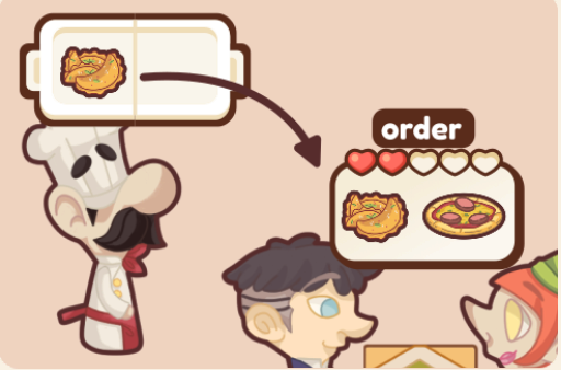 5、顾客会点各种菜肴,点单会显示在他们头顶的弹出窗口中。