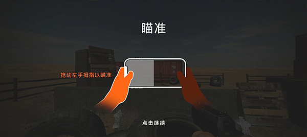 3、之后我们会进入游戏之内,拖动左手拇指所在的区域进行瞄准;