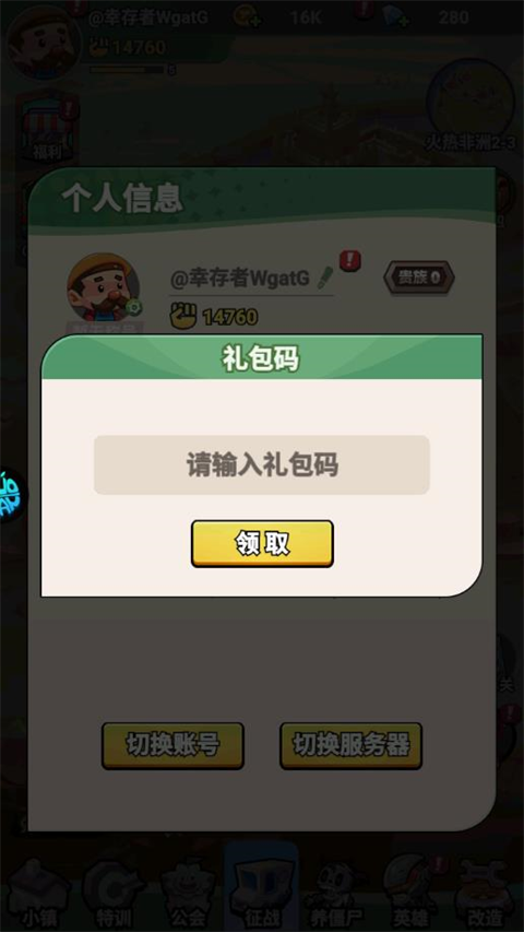 2、使用方法:在游戏内点击左上角人物头像-礼包码