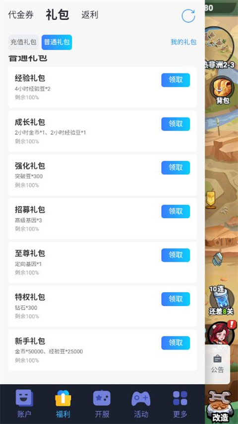 1、进入萌妖来袭游戏后,点击首页悬浮球领取礼包兑换码