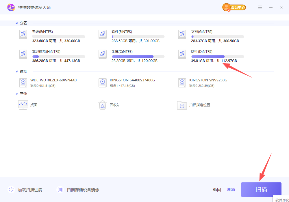 若分区列表里没有您需要恢复文件的分区,请重新拔插您的移动存储设备,然后点击“刷新”按钮。