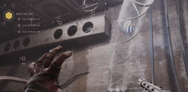 4、再回到刚才的房间,抓住小球,顺着管道把它带到锅炉那里,就能给锅炉降温了。一共有三个锅炉,按照上面步骤将给全部锅炉降温即可。