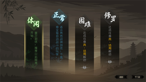 4、你可以根据需求进行难度选择,包含了休闲、正常、困难、修罗等等;
