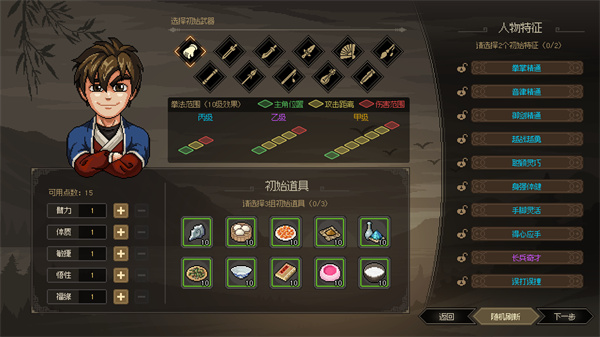 5、选择人物道具、初始武功、初始道具等;