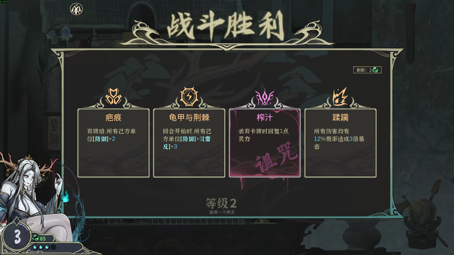 4、铺场还是站场:战斗然后变强,尸姬大人可以为战斗中表现优异的随从赐下祝福,大幅提升随从的基础数值,解锁其更为强力的技能分支,也可以获取一个全新的单位,提供更多的出手机会。