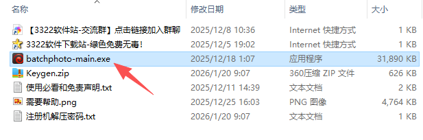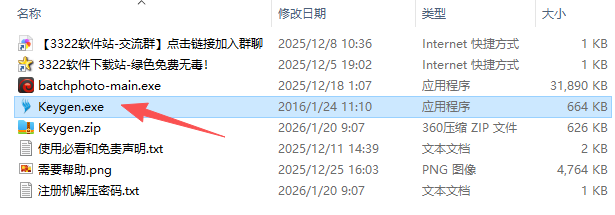 1、在本站下载解压后得到BatchPhoto安装程序和注册机,首先运行batchphoto-main.exe;