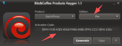 6、打开注册机,选择需要激活的版本,小编选择的是pro(专业版),然后点击generate;