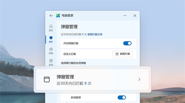 开启弹窗管理功能,减少广告及应用弹窗,使你的电脑纯净无扰。