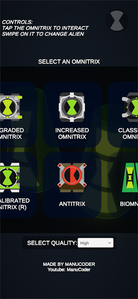 少年骇客模拟器(Omnitrix Simulator)是一款乐趣十足的休闲趣味模拟游戏,该游戏玩法非常简单,和一般的游戏相比,甚至没有任何的战斗环节,但是它的优势就在于对原动漫的极致模拟。我们大家都知道,在少年骇客Ben10动漫中,主角拥有着威力强大的超能仪,可以令其变身成为各种超级英雄。虽然很多小伙伴也特别向往拥有这样的超能力,但是动漫毕竟是动漫,现实生活中却难以实现。但现在有了这款少年骇客模拟器手机版,就可以让你亲身感受到超级英雄的变身效果,这里的变身音乐足以让你心潮澎湃!