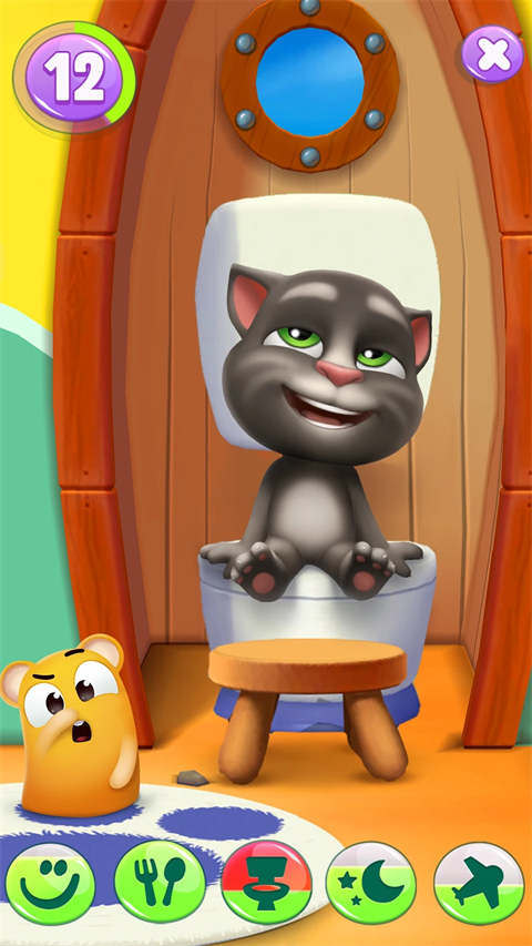 玩家可以在汤姆猫饿了时喂他吃的,在他脏了时给他洗澡,在他累了时让他上床睡觉,在他憋不住了时赶快带他上厕所!看着他成长为一只快乐的大猫。