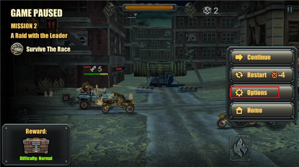 1、在本站下载末日战车游戏,首先会进入新手教程,过完教程之后,点击右上角的暂停键。