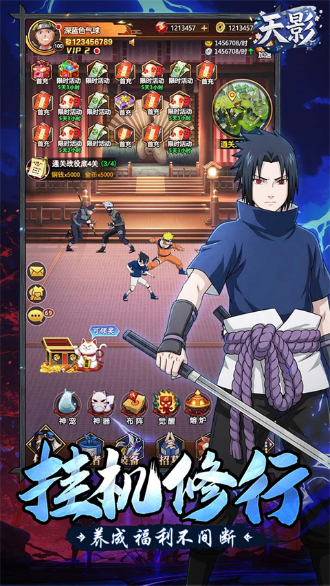 天影0.1折手游是一款火影忍者横版卡牌策略游戏,此版本为玩家内置0.1充值福利,创角即送纲手,登录活跃送大蛇丸、我爱罗,海量资源,影级忍者免费拿!天影火影忍者手游深度还原原作经典剧情脉络,从木叶村的日常修炼到忍界大战的巅峰对决,每一帧画面都承载着火影迷的热血回忆,玩家可自由组合角色卡牌阵容,释放千鸟、螺旋丸等标志性技能。游戏除了章节闯关模式外,还提供忍者对决、修行考试、终结之谷、忍者大战等玩法等你挑战。